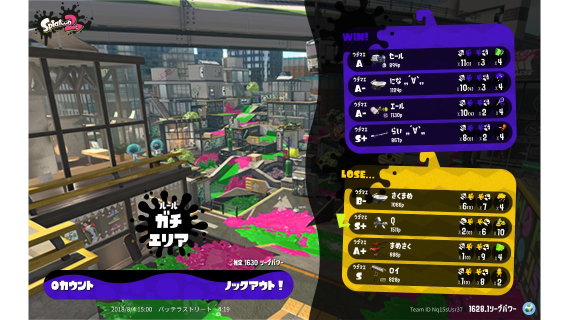 | Mode | Splat Zones - League Battle (Twin) | ||||||||||||||||||||||||||||