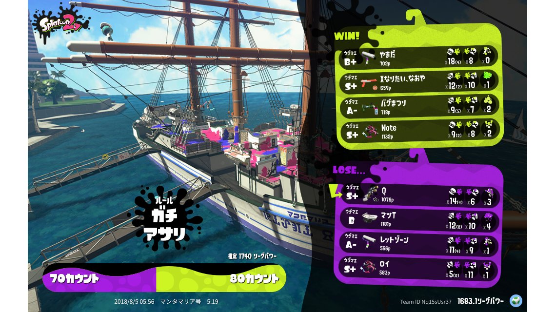 | Mode | Clam Blitz - League Battle (Twin) | ||||||||||||||||||||||||||||