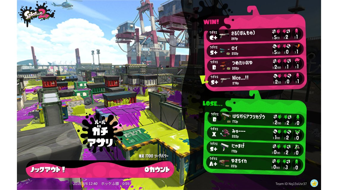 | Name | Weapon | Level | Rank | Inked | k+a/sp | k/d |