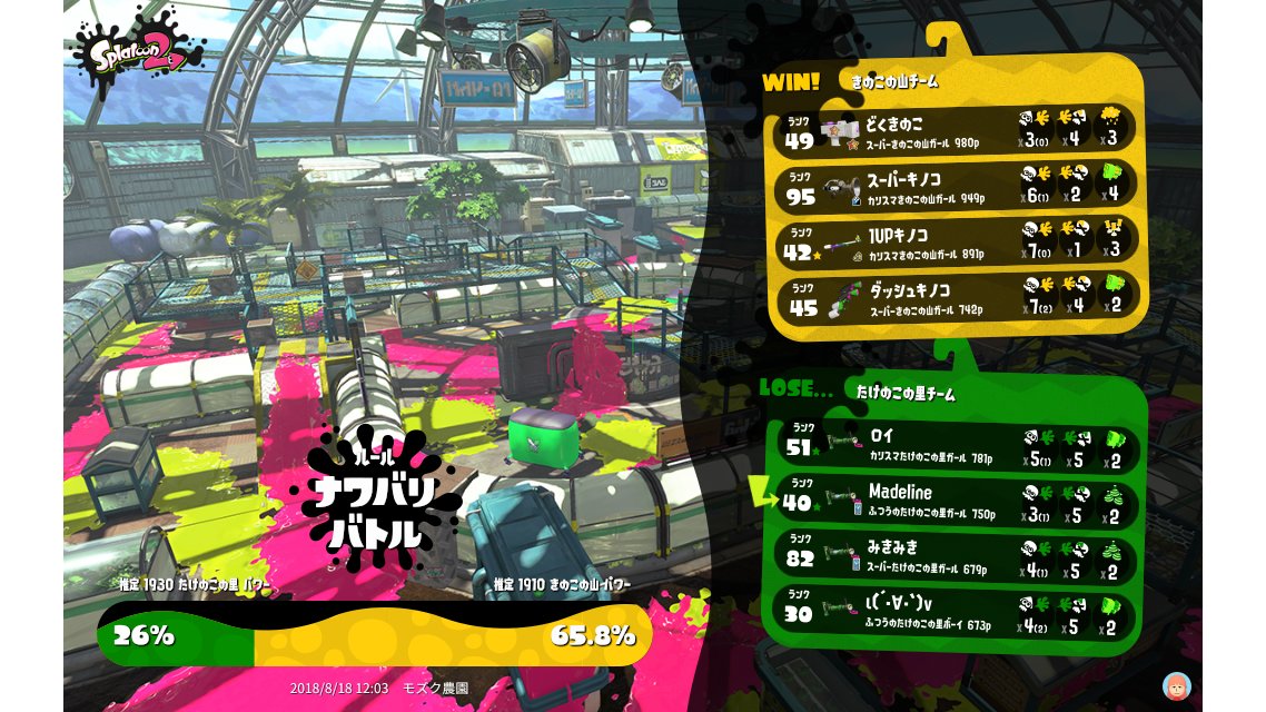 | Splatfest Title | たけのこの里 Fangirl 0 → たけのこの里 Fangirl 2 | |||||||||||||||||||||||||||||||