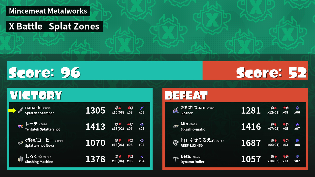 | Medals | #1 Overall Splatter #1 Splat Zone Guard #1 Super Jump Spot | ||