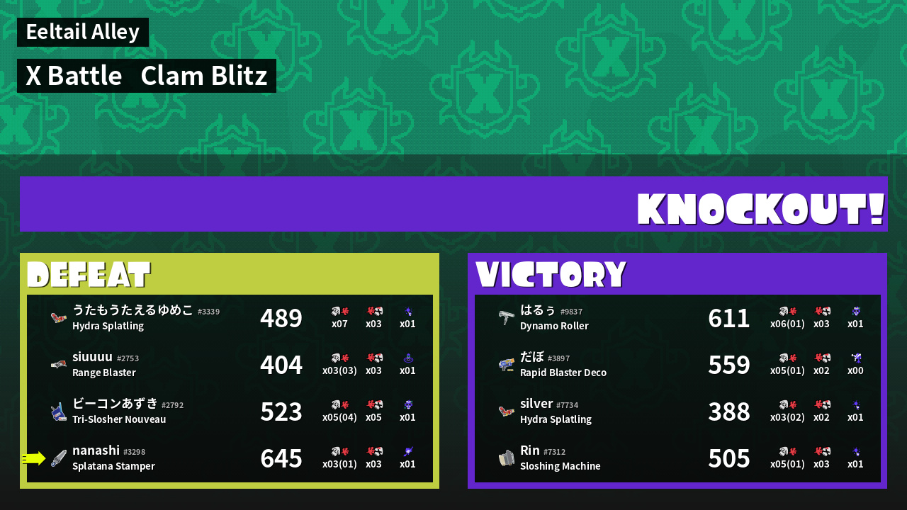 | Weapon | Splatana Stamper ( Burst Bomb / Zipcaster) | ||