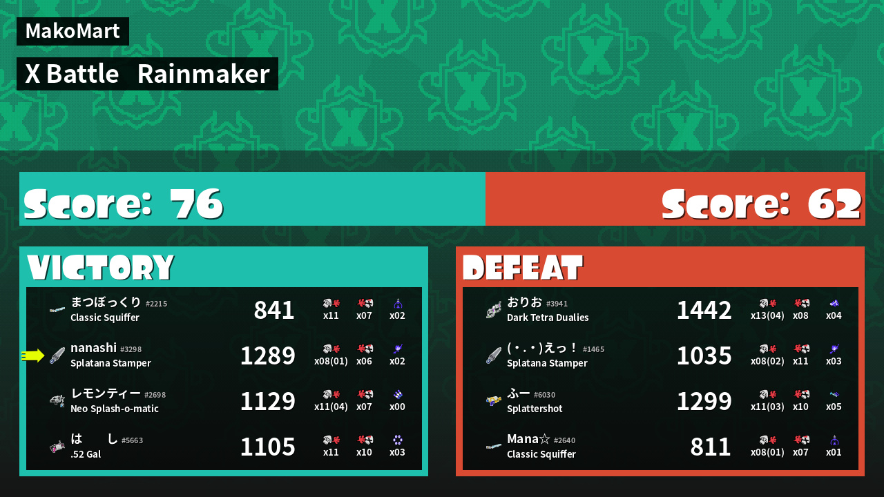 | Weapon | Splatana Stamper ( Burst Bomb / Zipcaster) | ||