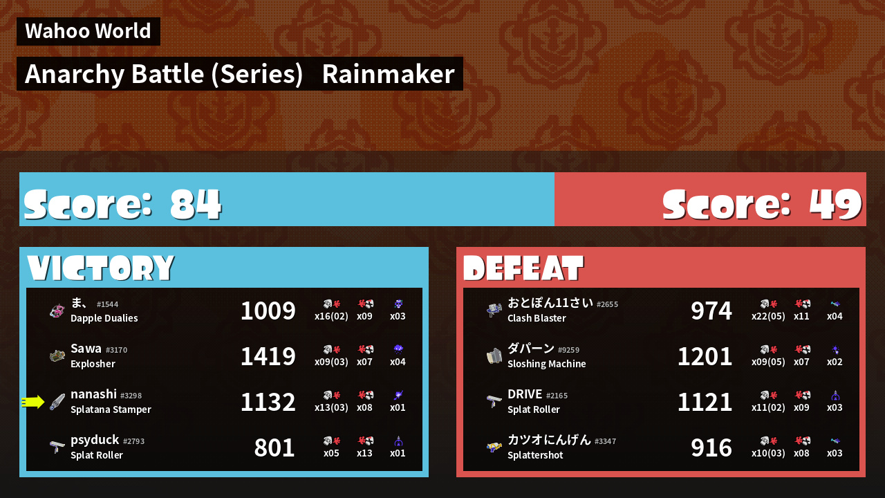 | Mode | Rainmaker - Anarchy Battle (Series) | ||