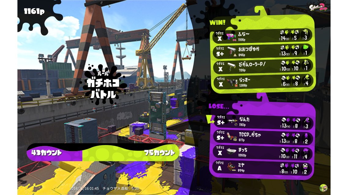| Name | Weapon | Level | Rank | Inked | k+a/sp | k/d |