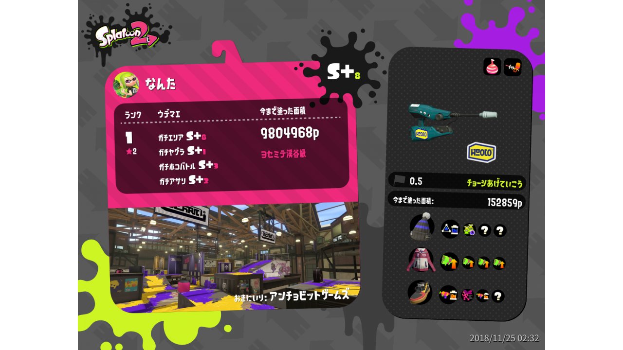 | SplatNet Battle # | 11,067 | ||||||||||||||||||||||||||||||||||
