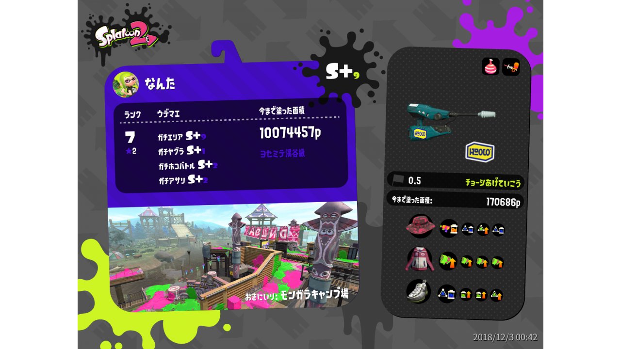 | Name | Weapon | Level | Rank | Inked | k+a/sp | k/d |