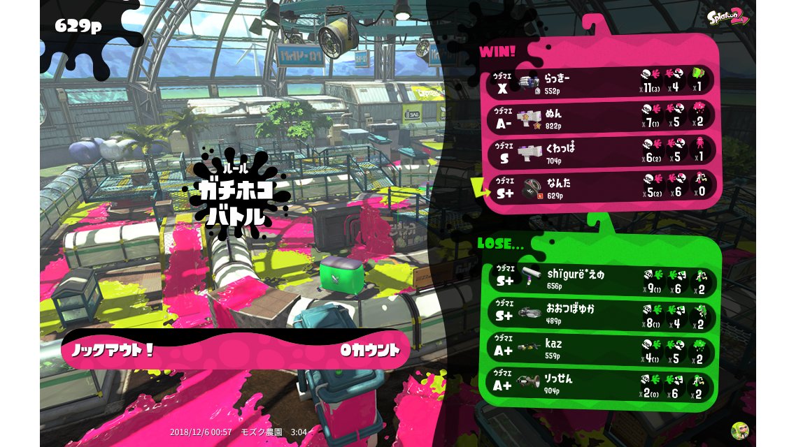 | Name | Weapon | Level | Rank | Inked | k+a/sp | k/d |