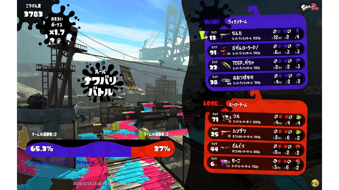 | Splatfest Title | ヴィラン Defender 129 → ヴィラン Defender 282 | |||||||||||||||||||||||||||||||