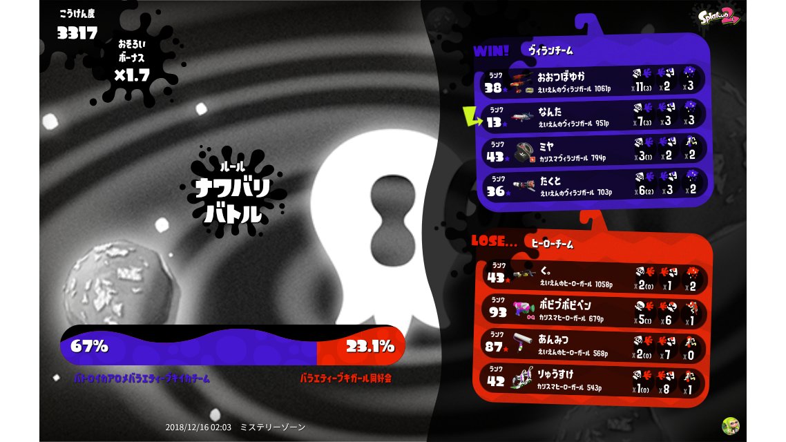 | Splatfest Title | ヴィラン Queen → ヴィラン Queen | |||||||||||||||||||||||||||||||||||||