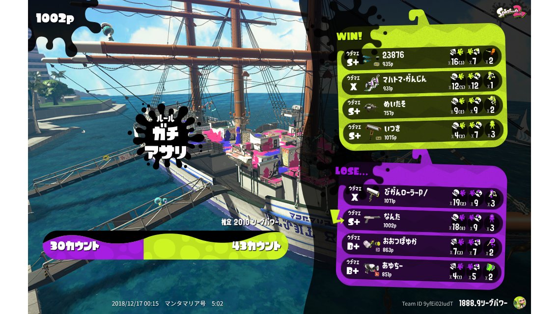| Name | Weapon | Level | Rank | Inked | k+a/sp | k/d |