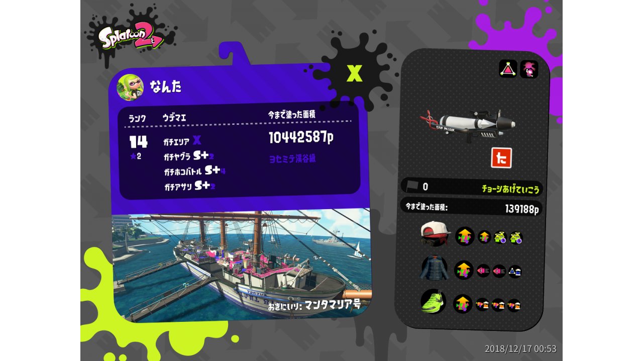 | Name | Weapon | Level | Rank | Inked | k+a/sp | k/d |