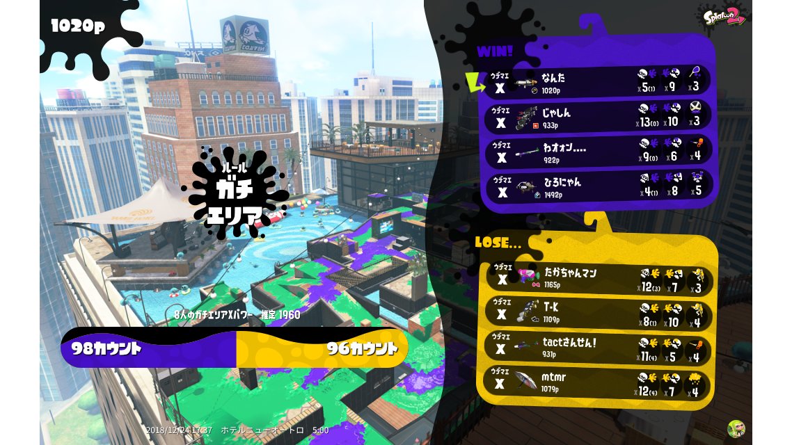 | Mode | Splat Zones - Ranked Battle | ||||||||||||||||||||||||||||||||||