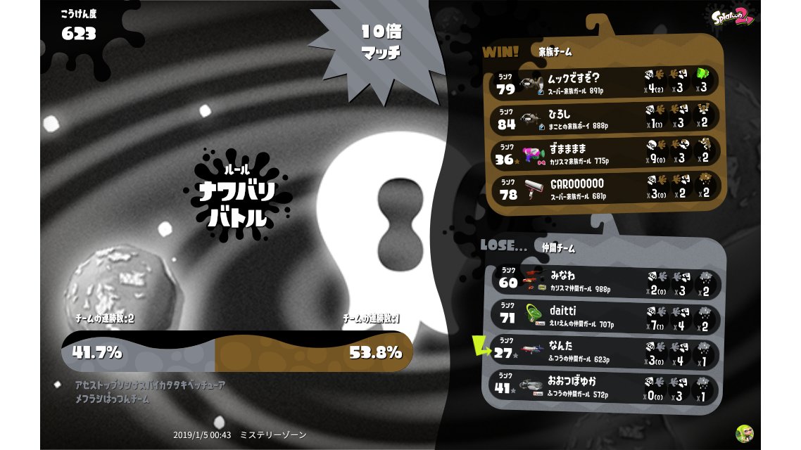 | Splatfest Title | 仲間 Fangirl 90 → 仲間 Fiend 10 | ||||||||||||||||||||||||||||||||||