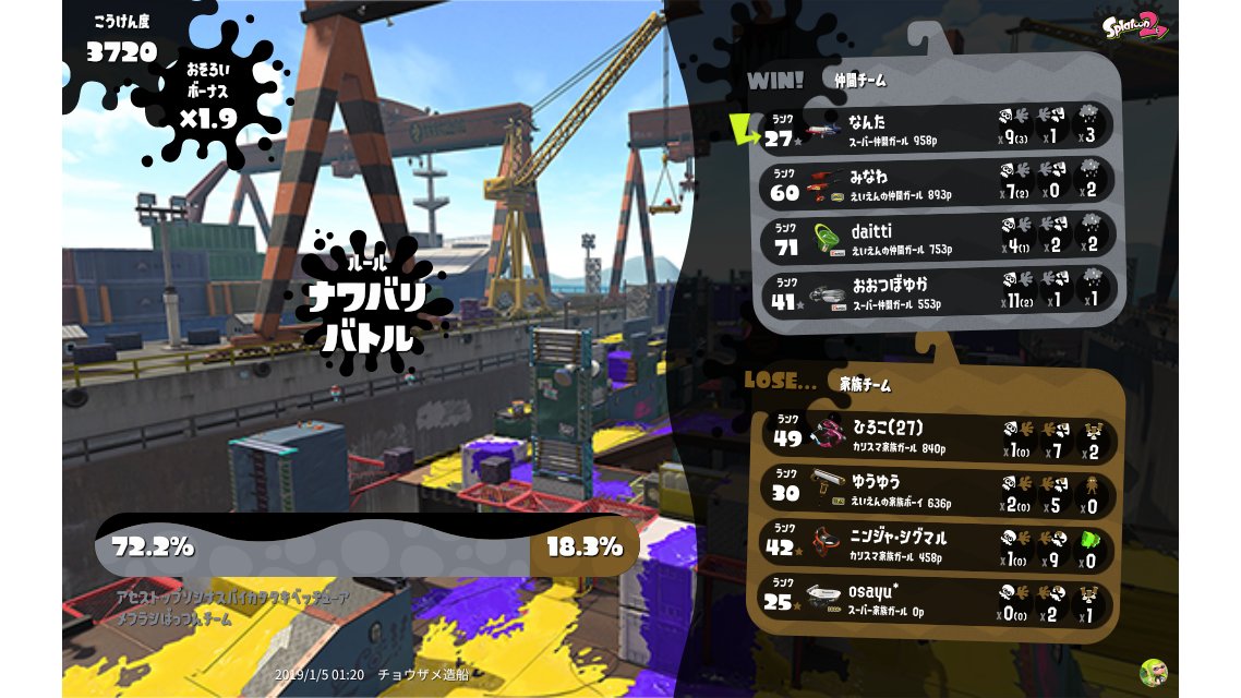 | Splatfest Title | 仲間 Defender 466 → 仲間 Champion 118 | ||||||||||||||||||||||||||||||||||