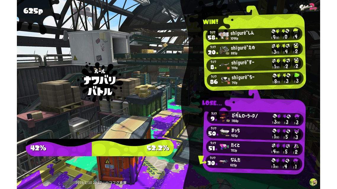 | Mode | Turf War - Private Battle | ||||||||||||||||||||||||||||||||||
