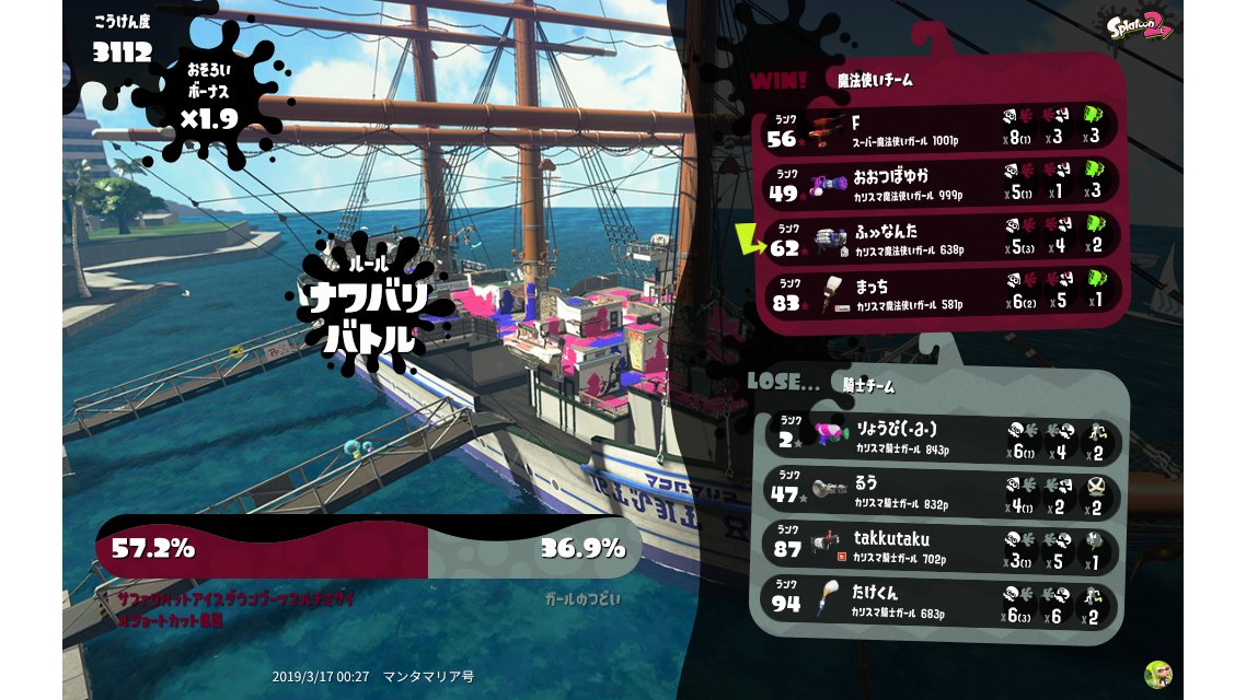 | Splatfest Title | 魔法使い Champion 111 → 魔法使い Champion 282 | ||||||||||||||||||||||||||||||||||||||||