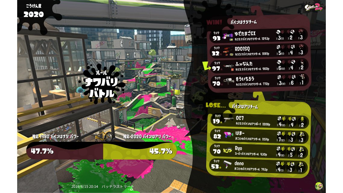 | Splatfest Title | パインはナシ Champion 510 → パインはナシ Champion 600 | |||||||||||||||||||||||||||||||