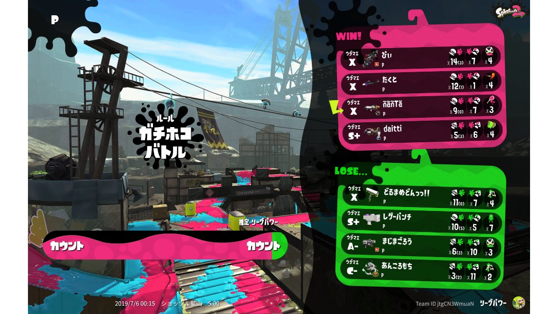 | Name | Weapon | Level | Rank | Inked | k+a/sp | k/d |