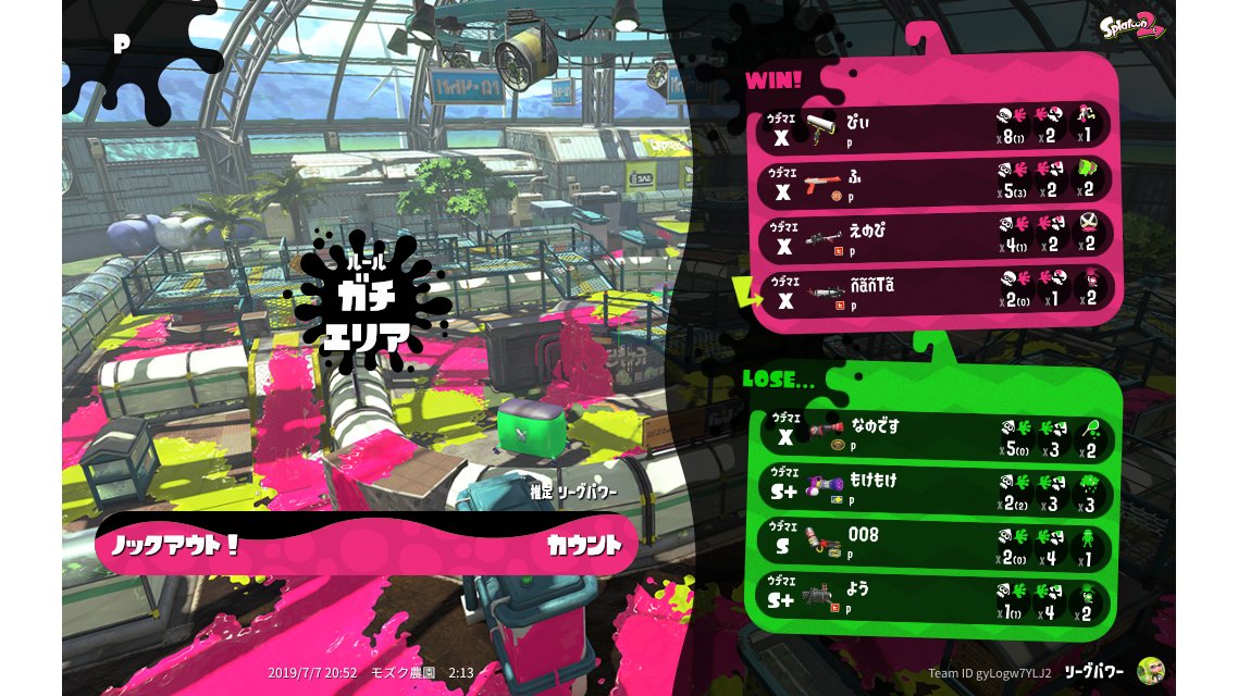 | Mode | Splat Zones - League Battle (Quad) | |||||||||||||||||||||||||||||||