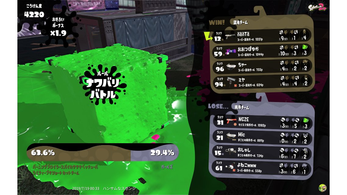 | Team 混沌 バーニングブロイラースパイカタタキベッチューバラエティーブキショートカットチーム Win Streak: 0 | 3,644 | 20 / 10 | 2.00 66.67% | ||||