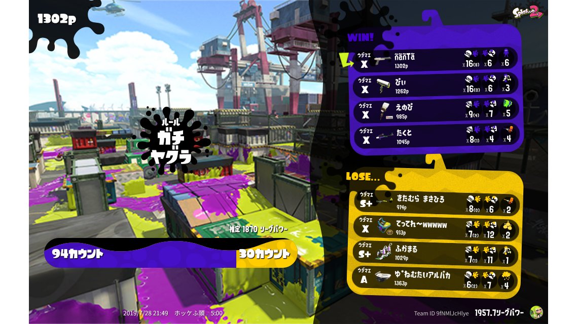 | SplatNet Battle # | 16,526 | ||||||||||||||||||||||||||||||||||