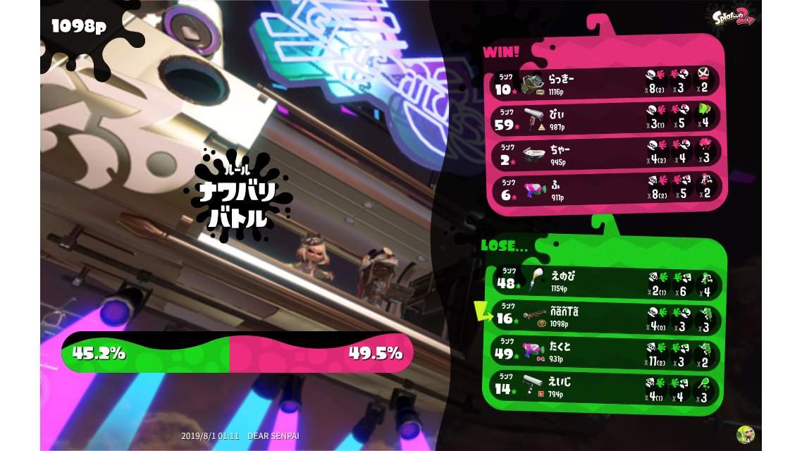 | SplatNet Battle # | 16,596 | ||||||||||||||||||||||||||||||||||||||||