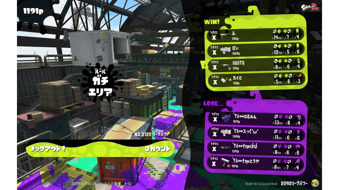 | Mode | Splat Zones - League Battle (Quad) | |||||||||||||||||||||||||||||||