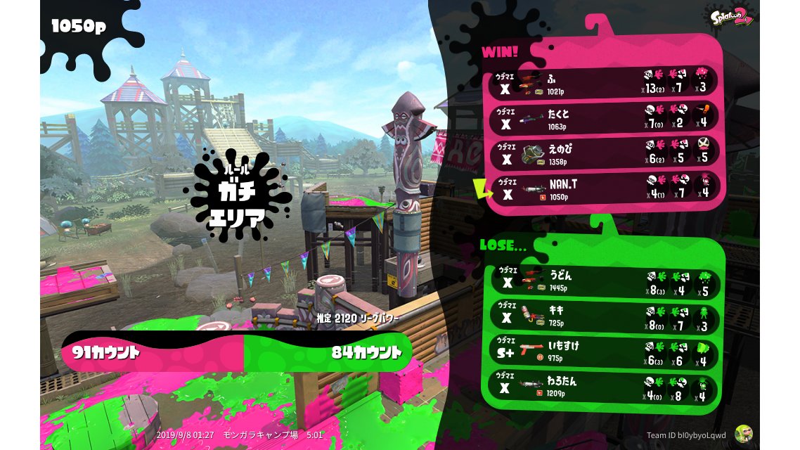 | Mode | Splat Zones - League Battle (Quad) | |||||||||||||||||||||||||||||||