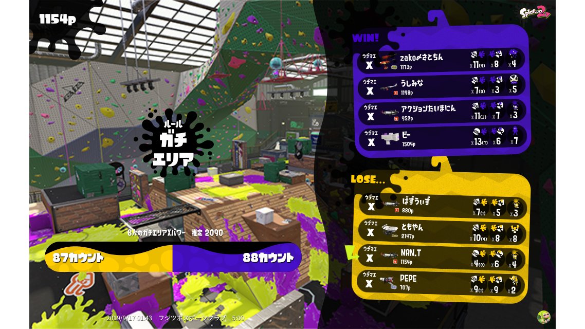 | Mode | Splat Zones - Ranked Battle | ||||||||||||||||||||||||||||||||||