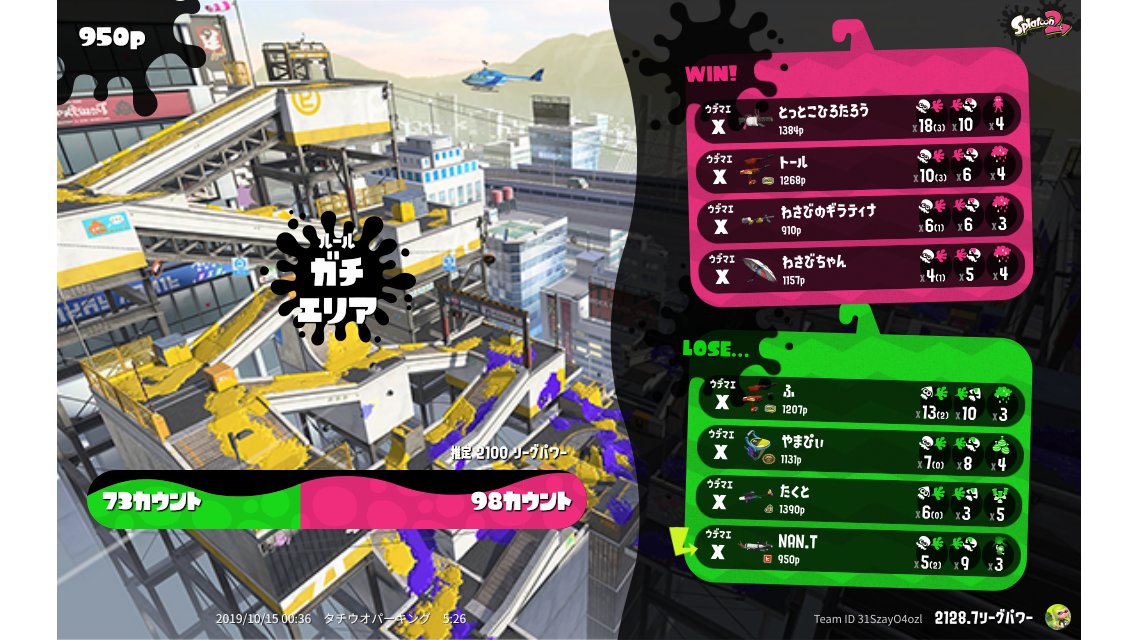| Mode | Splat Zones - League Battle (Quad) | ||||||||||||||||||||||||||||||||||