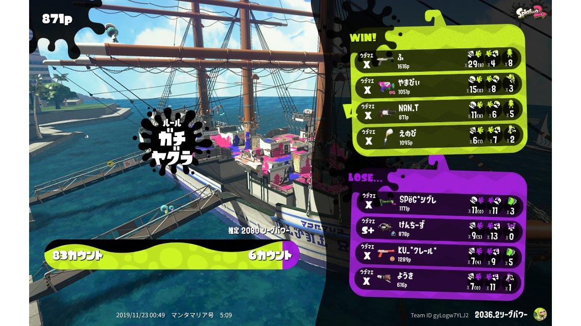 | SplatNet Battle # | 18,109 | ||||||||||||||||||||||||||||||||||