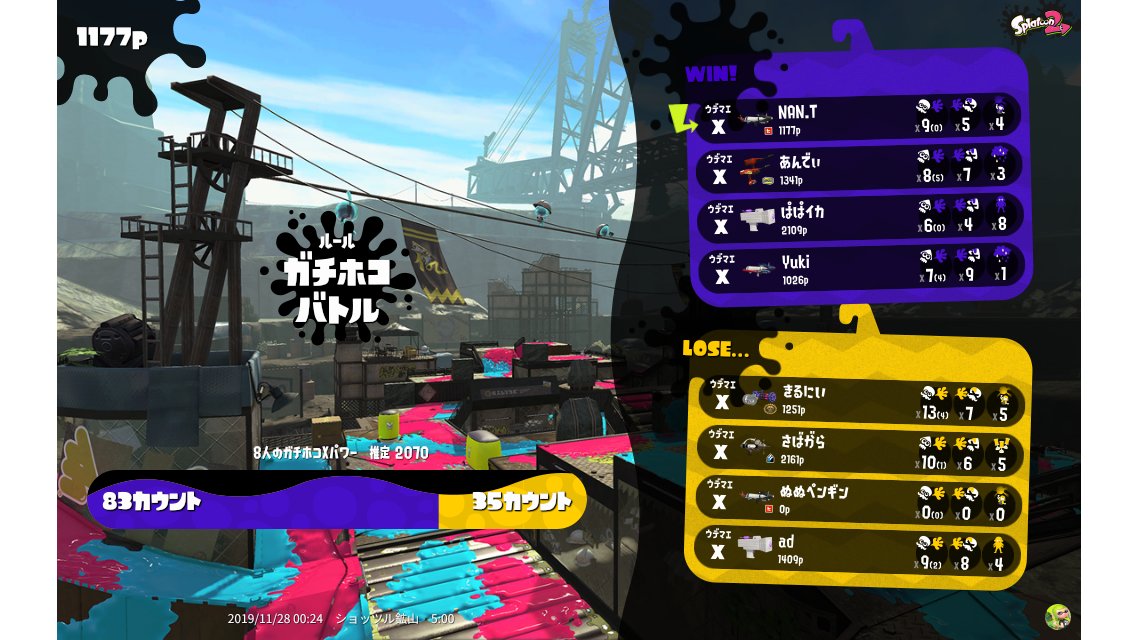 | SplatNet Battle # | 18,185 | ||||||||||||||||||||||||||||||||||