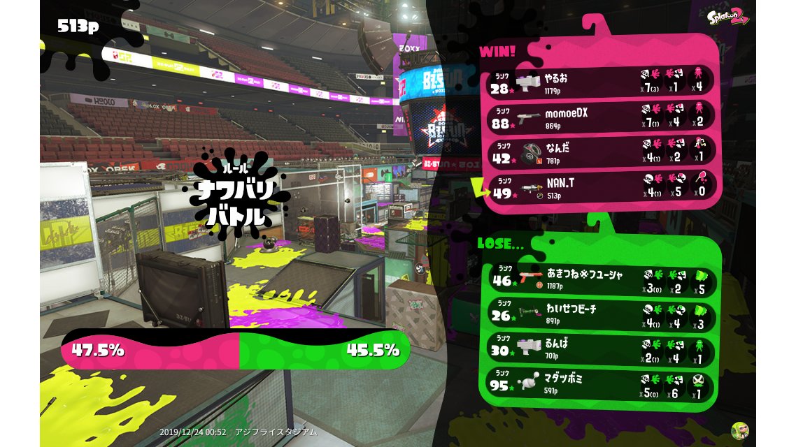| Mode | Turf War - Regular Battle | |||||||||||||||||||||||||||||||