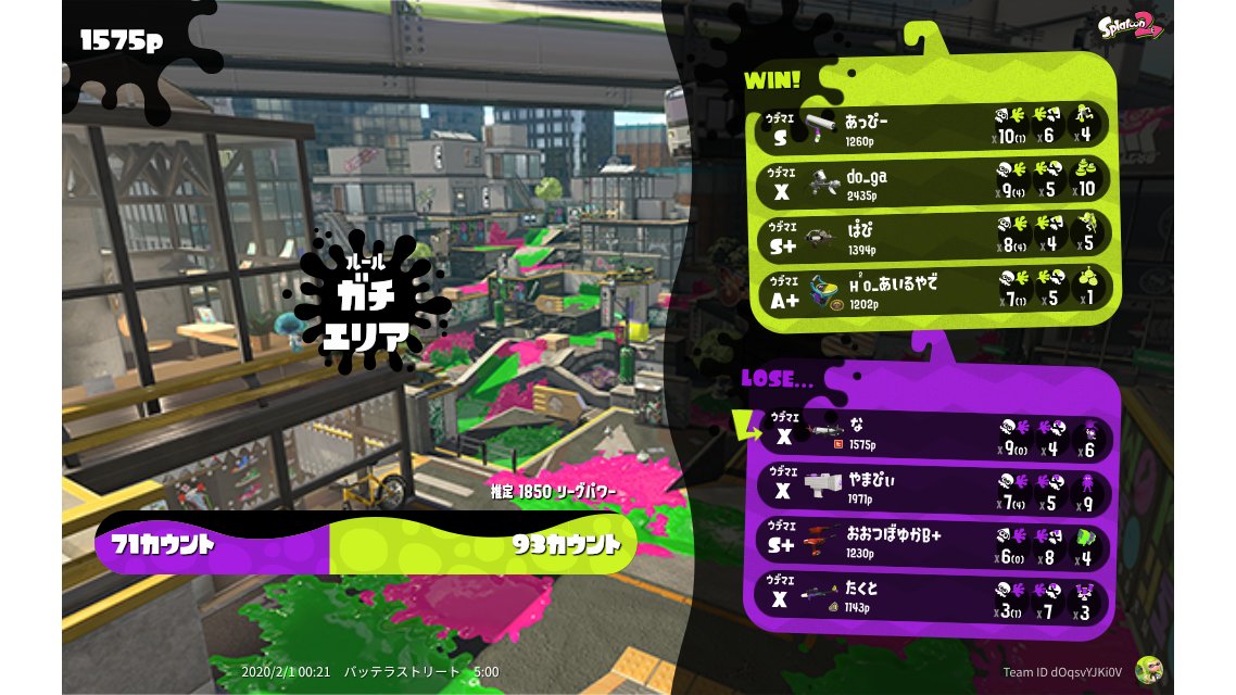 | Mode | Splat Zones - League Battle (Quad) | |||||||||||||||||||||||||||||||