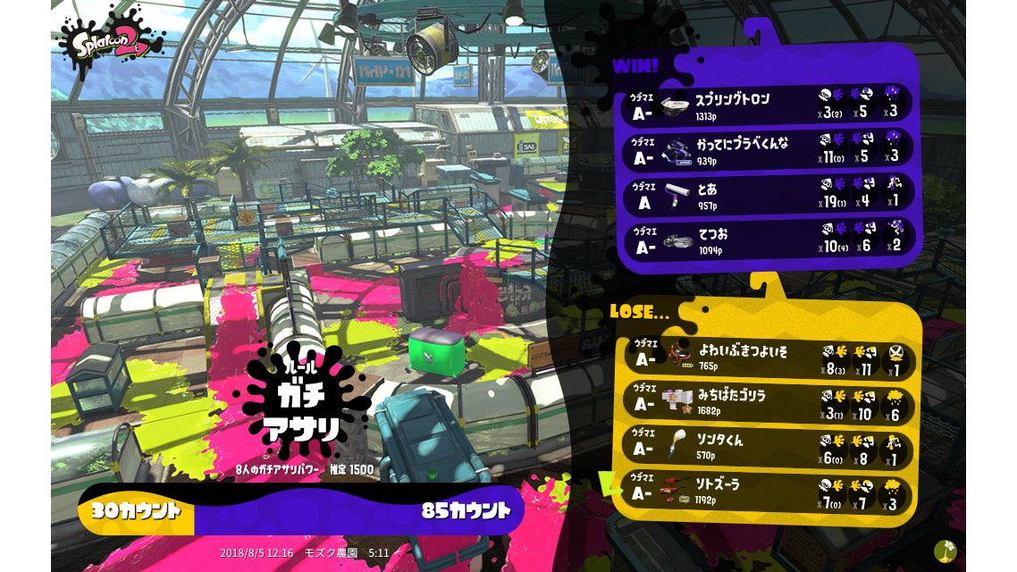 | SplatNet Battle # | 8,369 | |||||||||||||||||||||||||||||||||||||