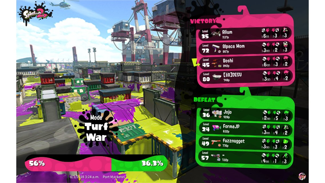 | Mode | Turf War - Regular Battle | |||||||||||||||||||||||||||||||||||||||||||||||||