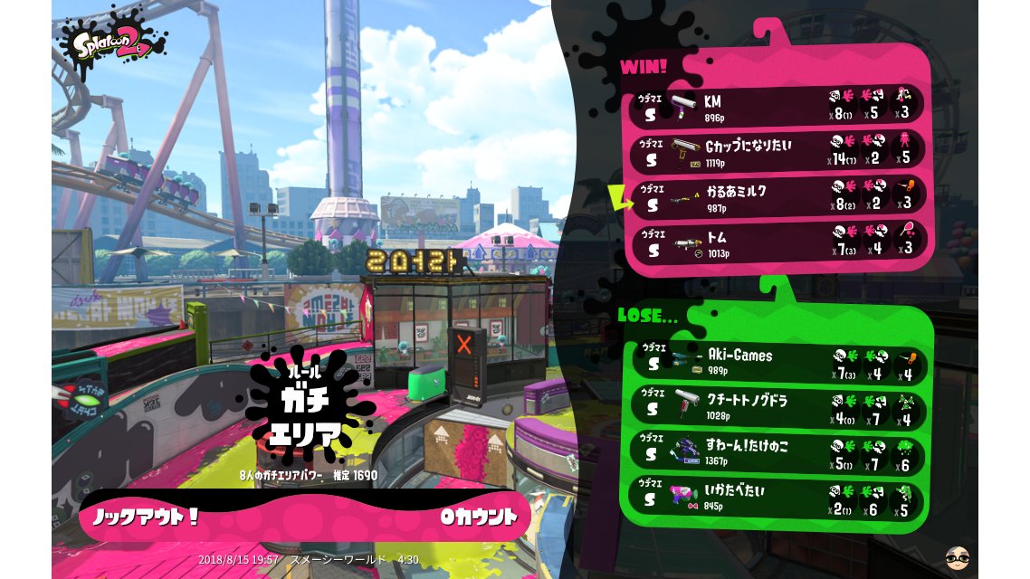 | Mode | Splat Zones - Ranked Battle | ||||||||||||||||||||||