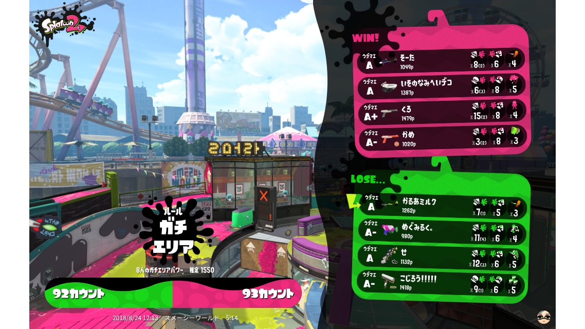 | Mode | Splat Zones - Ranked Battle | ||||||||||||||||||||||