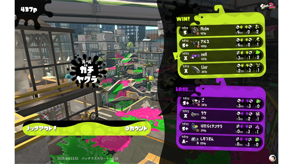 | Name | Weapon | Level | Rank | Inked | k+a/sp | k/d |