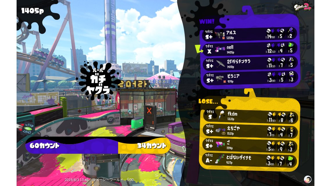 | Name | Weapon | Level | Rank | Inked | k+a/sp | k/d |