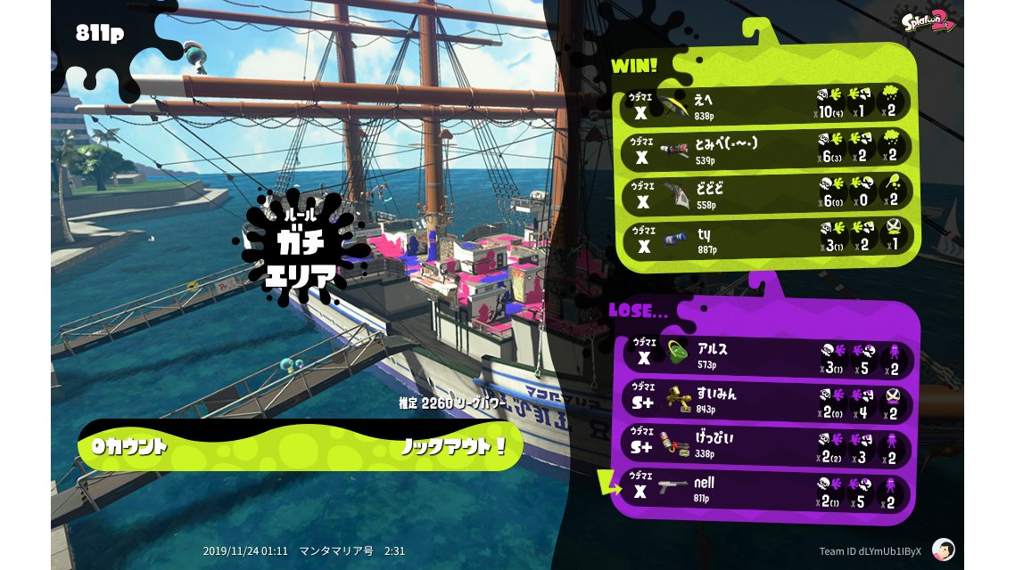 | Mode | Splat Zones - League Battle (Quad) | ||||||||||||||||||||||||||||||||||||||||