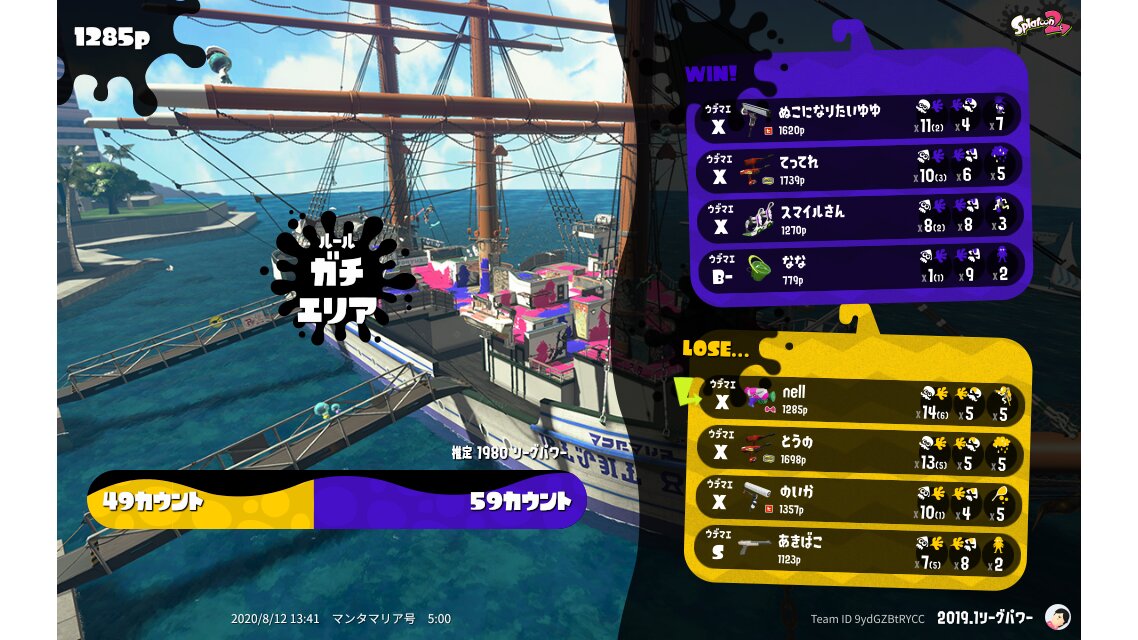 | Mode | Splat Zones - League Battle (Quad) | ||||||||||||||||