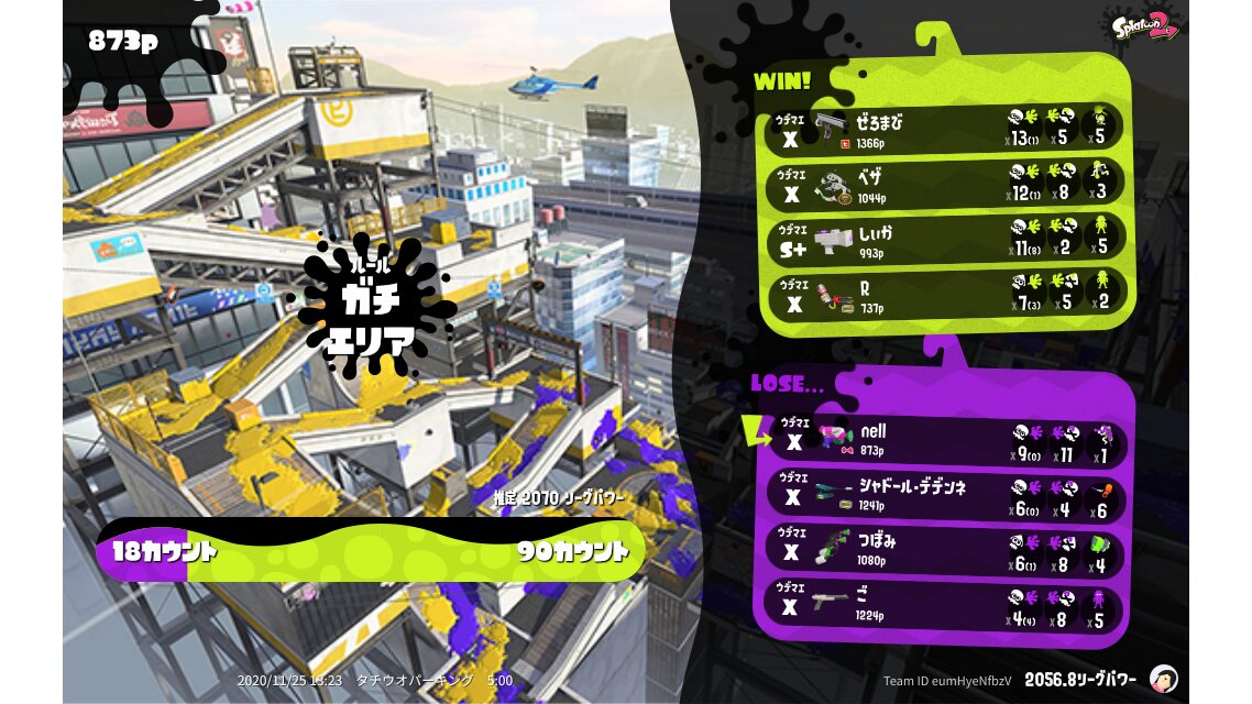 | Mode | Splat Zones - League Battle (Quad) | ||||||||||||||||