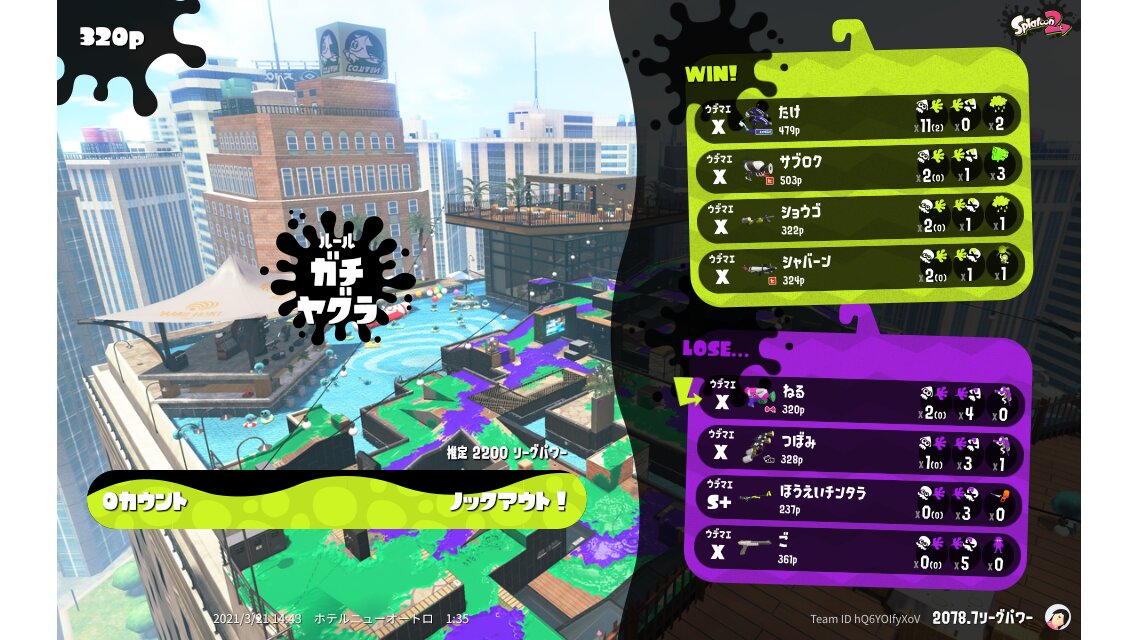 | Name | Weapon | Level | Rank | Inked | k+a/sp | k/d |
