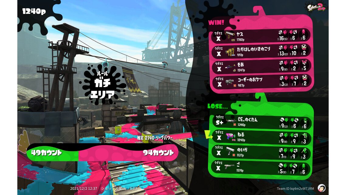 | Mode | Splat Zones - League Battle (Quad) | ||||||||||||||||||||||||||||||||||