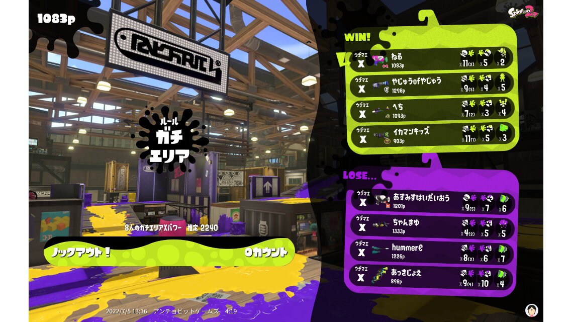 | Mode | Splat Zones - Ranked Battle | ||||||||||||||||||||||||||||||||||