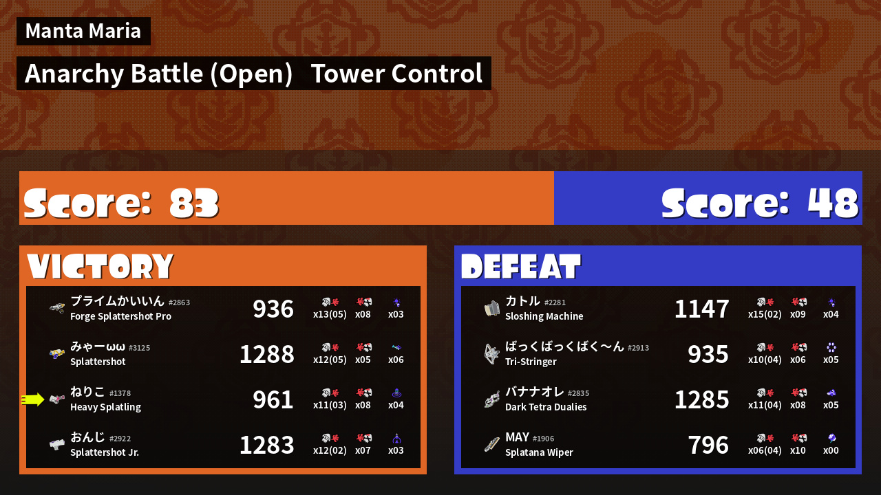 Kills / Deaths | 8 + 3 / 8 = Kill Ratio: 1.00 | ||