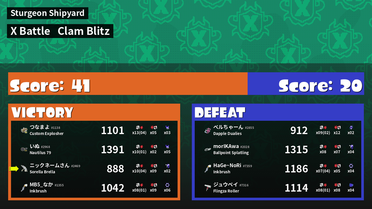 | Mode | Clam Blitz - X Battle | ||