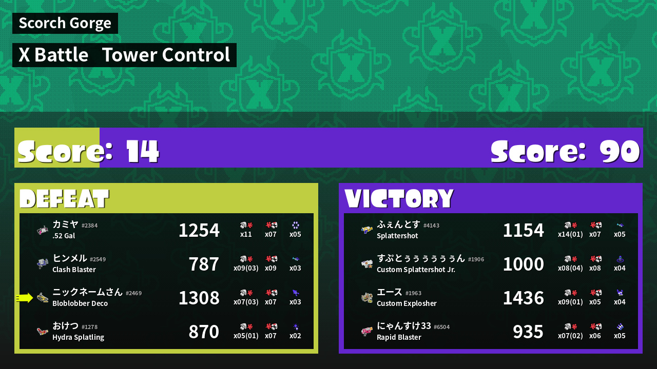 | Mode | Tower Control - X Battle | ||